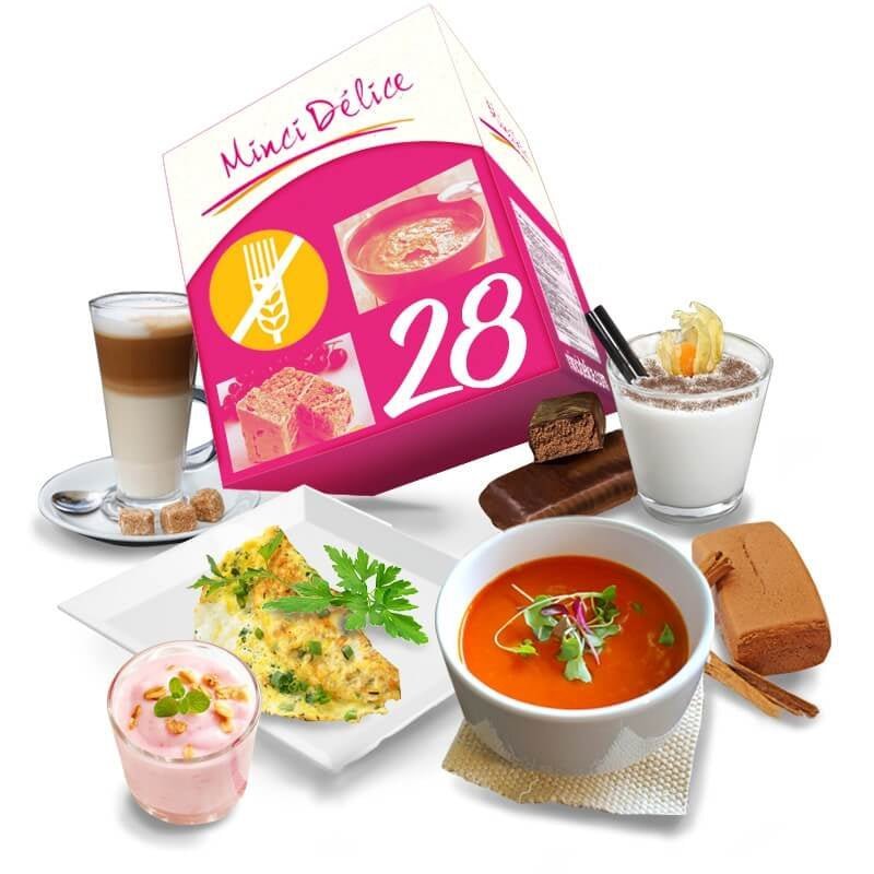 Le bustine proteiche MinciDélice incluse in questo kit dimagrante di 28 giorni possono tuttavia contenere tracce minime di glutine (meno di 20 milligrammi) dovute alle operazioni di confezionamento e di imballagio.